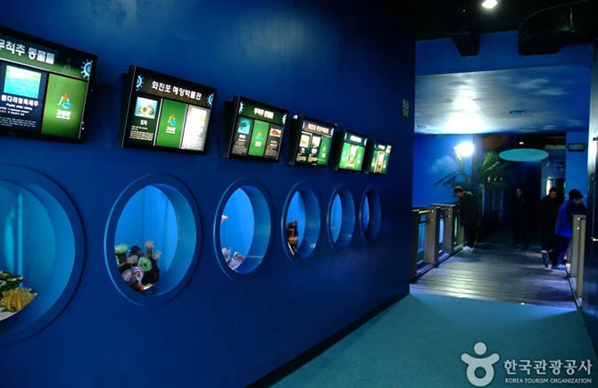 강원도 고성군 현내면 화진포 관광지구 내에 위치한 화진포 해양박물관은 세계적으로 희귀한 각종 조개류, 갑각류, 산호류, 화석류, 박제 등 각각의 서식 환경과 컨셉에 따라 보여주는 어류전시관으로 구성되어 있다. (자료출처 : 대한민국 구석구석 - korean.visitkorea.or.kr)