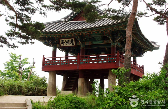 청간정(淸澗亭)은 설악산 골짜기에서 흘러내리는 청간천과 만경청파가 넘실거리는 기암절벽 위에 팔각지붕의 중층누정으로 아담하게 세워져 있으며, 이곳에서 바라보는 일출과 월출시의 장엄함과, 밀려오는 파도가 마치 뭉게 구름이 일다가 안개처럼 사라져 가는 황홀경으로 관동팔경중 수일경으로 손꼽히고 있다. (자료출처 : 대한민국 구석구석 - korean.visitkorea.or.kr)